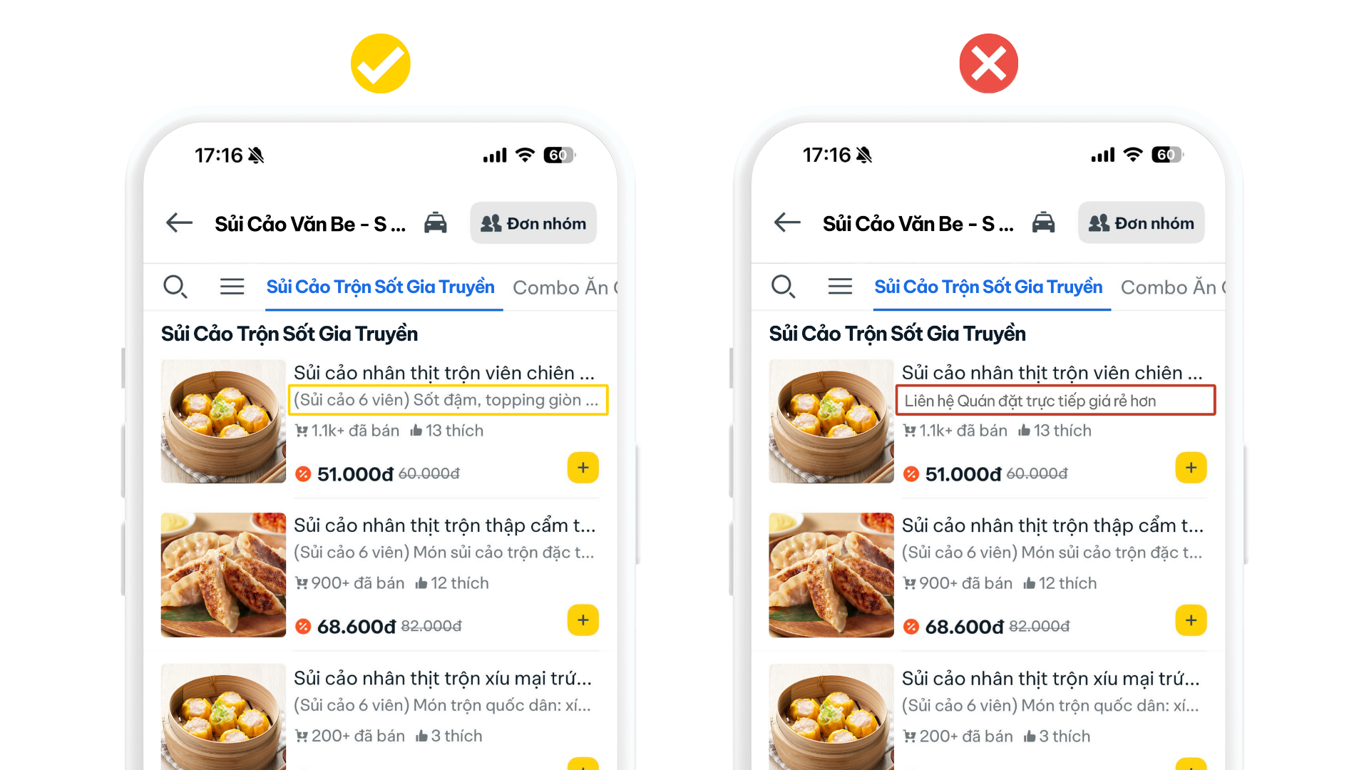 Trước khi đọc tên món hay xem giá, khách thường bị thu hút bởi hình ảnh. Một bức ảnh rõ ràng, hấp dẫn có thể khiến khách muốn đặt món ngay lập tức, trong khi hình ảnh kém chất lượng lại dễ khiến họ rời đi và chọn quán khác. Ảnh món không giống sản phẩm thực tế khách nhận.